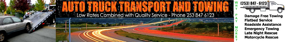 Auto Truck Transport and Towing offers low rates and provides a quality service at no extra charge. That's because we care about each and every one of our customers very much and understand just how important a fast friendly tow truck service can be during any kind of roadside emergency. We offer damage free flatbed towing service in Pierce County and surrounding areas. Roadside assistance, emergency towing, late night rescues, and even motorcycle transport and towing. We also offer door to door delivery service and have probably picked up and delivered more antique, classic and custom cars than any other towing service in western Washington. We can also haul and transport other items too large for a standard truck too like small sheds, tools, and machinery. |